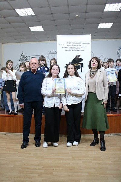 Кудімова Марія, Русин Олександр, Товт Софія, Когут Роберт – Мукачівська ШМ ім. С.Ф.Мартона. Викладачі Геревич Наталія Михайлівна, Гарна Лідія Федорівна, Медвідь Мар’яна Іванівна, Семенова Анжеліна Тимофіївна.